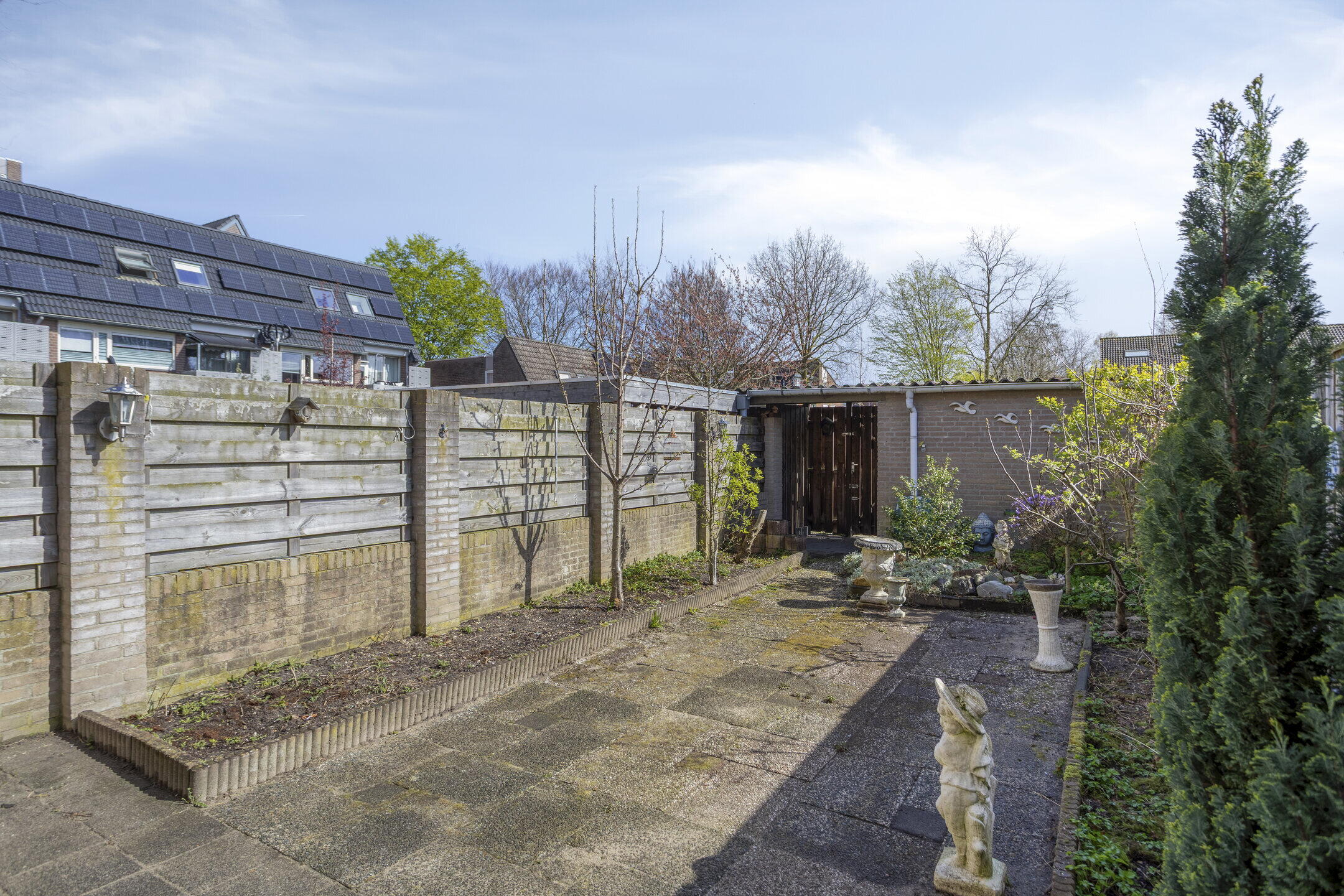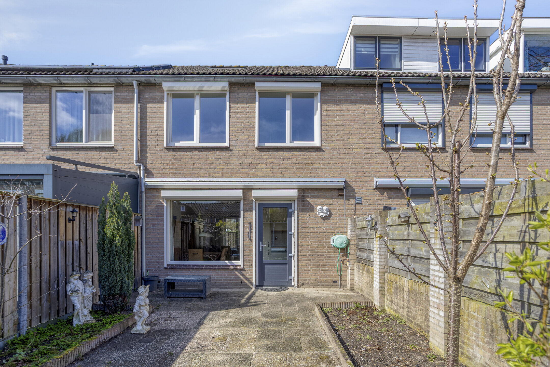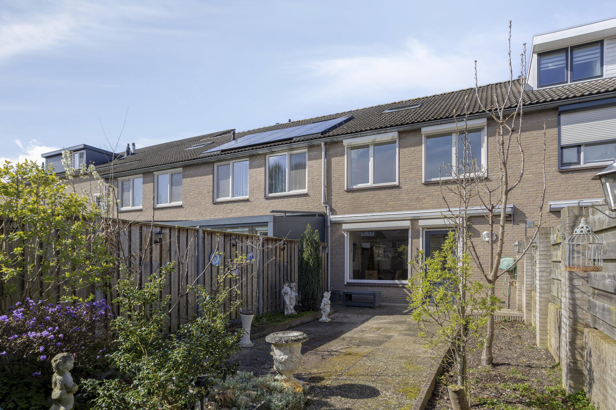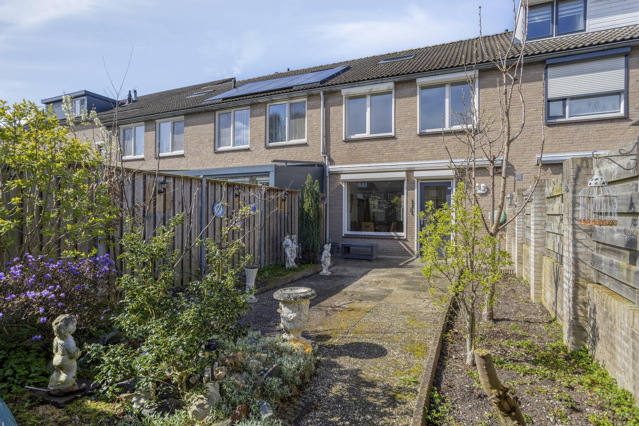 - Diepe en zonnige achtertuin grenzend aan royale openbare ruimte.