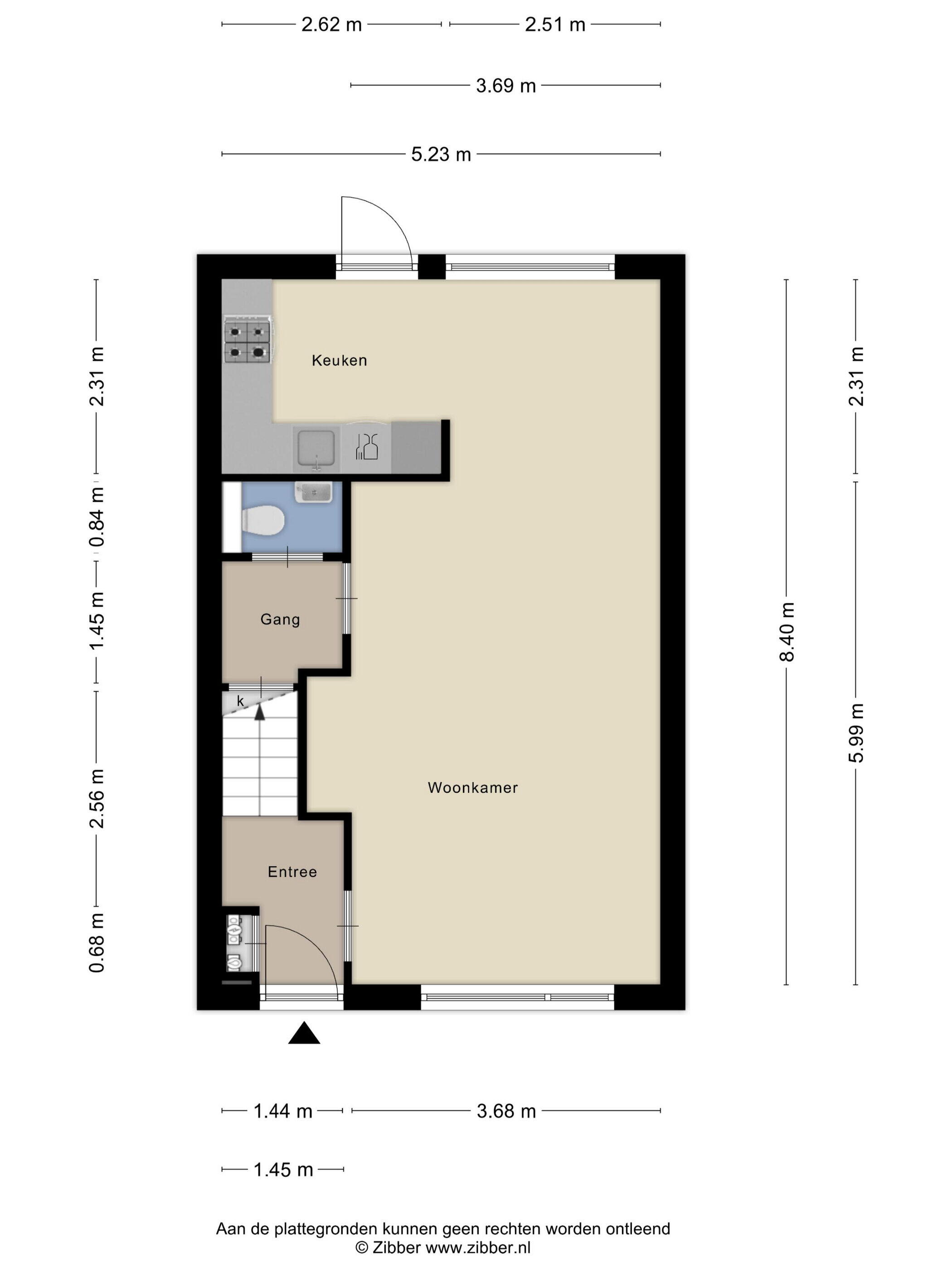 - 63 m² (11.5 meter diep en 5.45 meter breed)